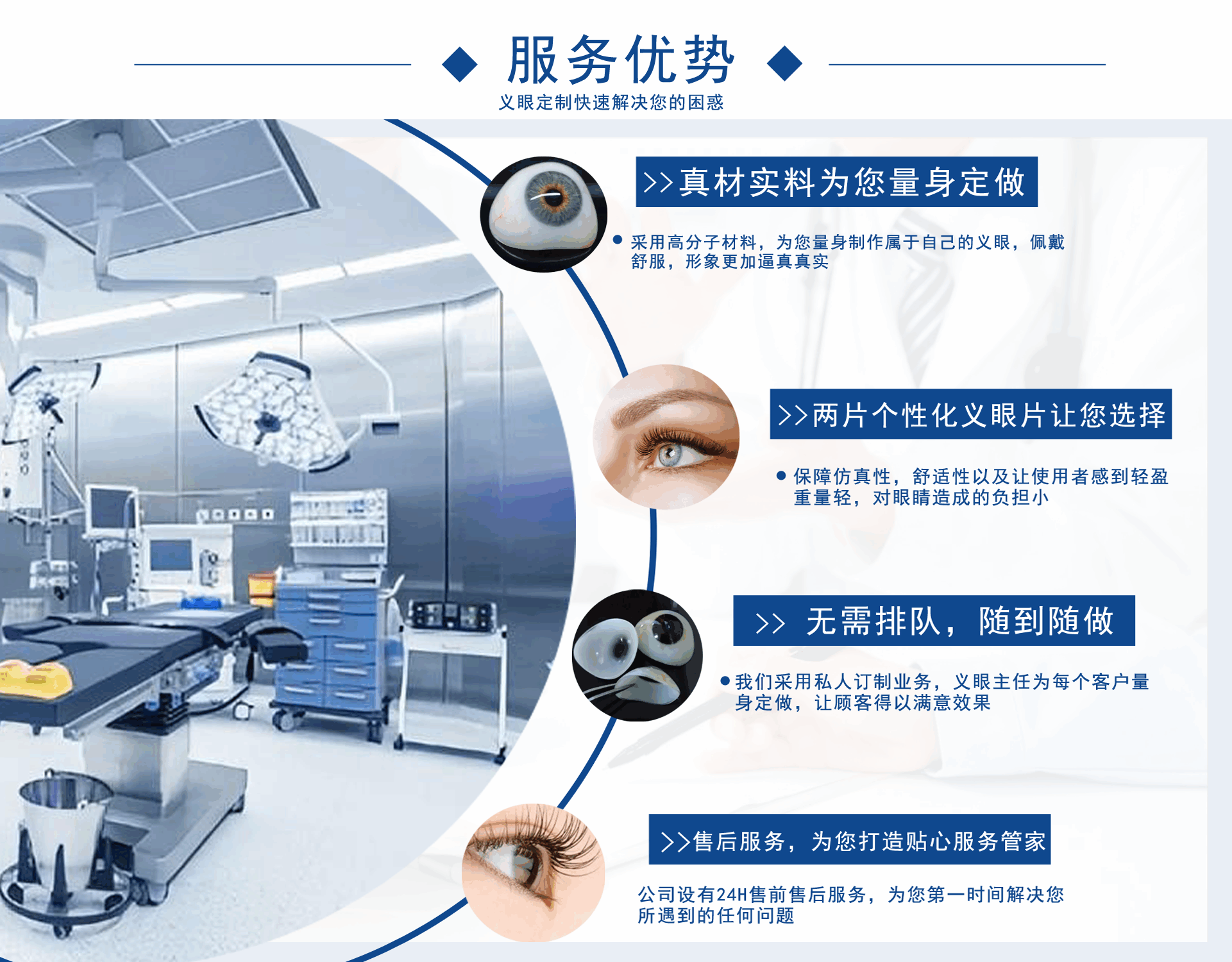 正目醫(yī)療科技有限公司致力于為用戶提供假眼,在哪里可以定制義眼,義眼哪家好,假眼價(jià)格,義眼價(jià)格,義眼費(fèi)用,義眼公司,是集義眼定制、保養(yǎng)、咨詢?yōu)橐惑w的綜合性義眼定制企業(yè)。 獨(dú)創(chuàng)的義眼工藝結(jié)構(gòu),根據(jù)仿生物學(xué)原理,采用進(jìn)口醫(yī)用植入材料:高分子材料、無毒素、性能穩(wěn)定、堅(jiān)固耐用)、聚甲基丙乙烯阝-羥乙酯HEMA材料(軟性親水性材料),結(jié)合獨(dú)特的義眼個(gè)性化佩戴技術(shù),按佩戴者健眼的形態(tài)、角膜、虹膜、及瞳孔的大小、色澤、血管紋理和脂肪分布,設(shè)計(jì)制作。擁有超薄、質(zhì)輕、光滑、親水透氧、佩戴舒適和高逼真的特點(diǎn)。為保證佩戴效...